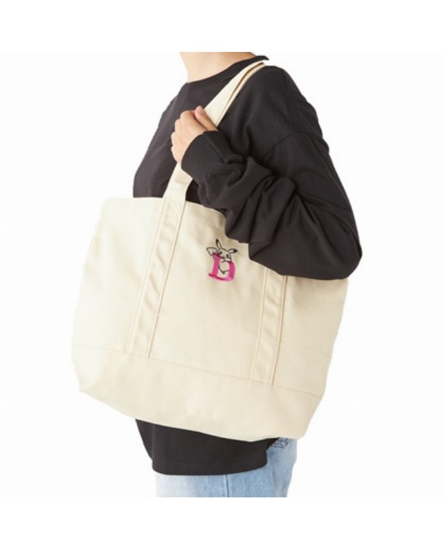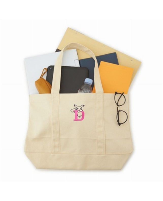 好きなアルファベットと色をえらんで刺繍ができるトートバッグだよ!16オンスのキャンパス生地を使用したシンプルなデザインで、A4サイズのノートなどもすっぽり入るからとても使いやすいよ。